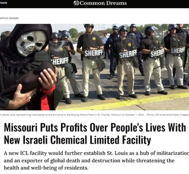 We understand this facility will bring not only health hazards to residents, but also possible military retaliatory consequences due to the nature of ICL's business and their complicity in now Internationally recognized War Crimes against civilians in Gaza and Lebanon.