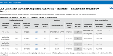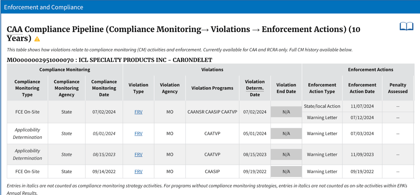 Archived EPA report of ICL violating the Clean Air Act at their South City Location